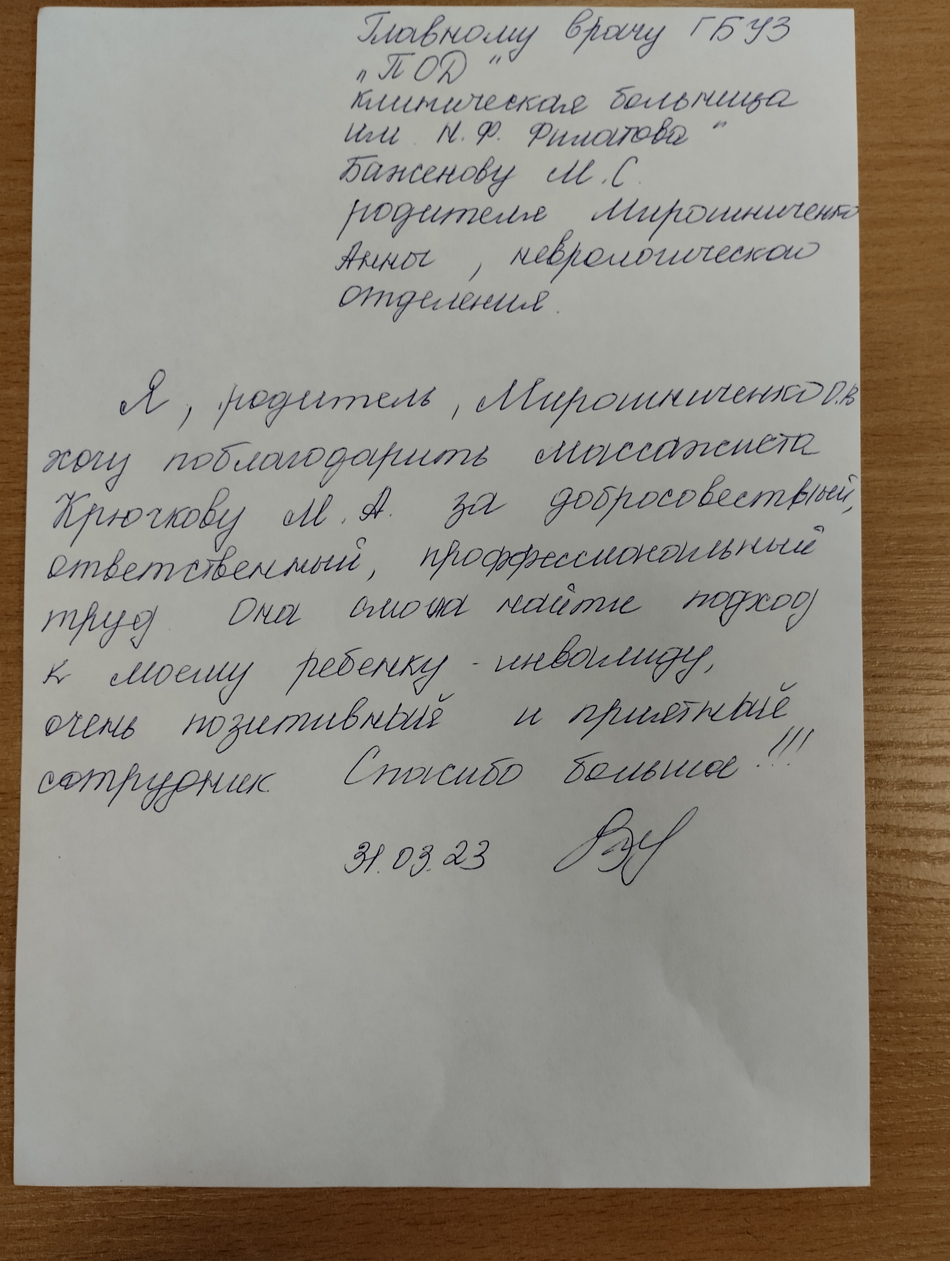 Благодарность Крючковой М.А.