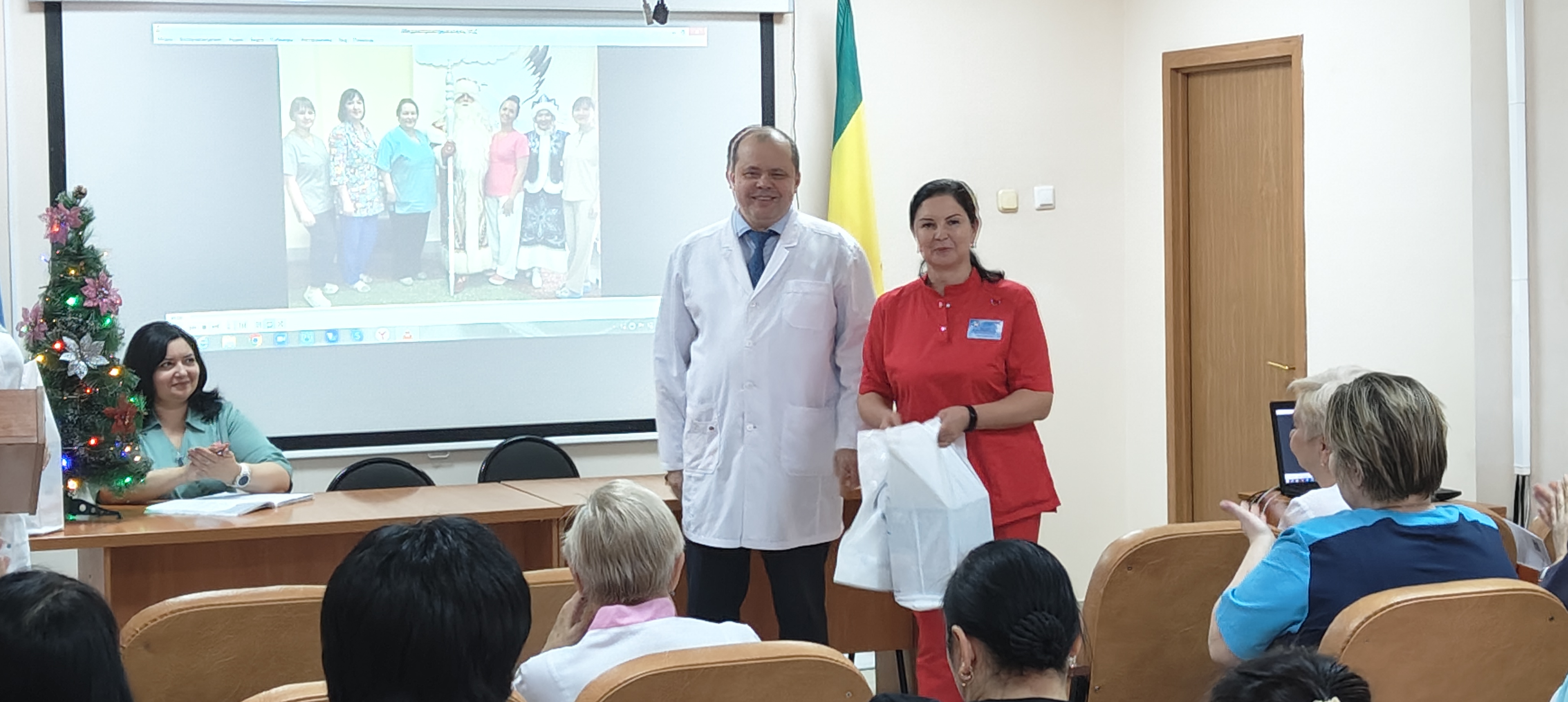 Главный врач больницы Баженов Максим Сергеевич поблагодарил всех участников конкурса за их активное участие, вручил подарки победителям и призёрам и пожелал всем сотрудникам больницы здоровья, счастья и благополучия в наступающем Новом году.