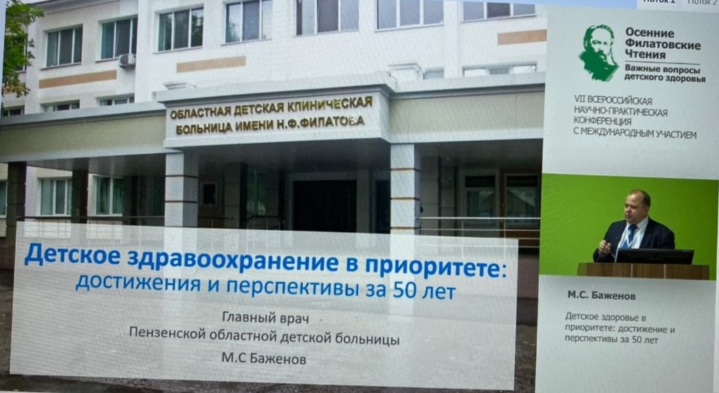 В период с 24.09 по 26.09.25 года главный врач Пензенской областной детской клинической больницы им. Н.Ф. Филатова Баженов Максим Сергеевич принял участие в VII Всероссийской научно-практической конференции с международным участием «Осенние Филатовские чтения – важные вопросы детского здоровья». Максим Сергеевич выступил перед участниками форума с докладом «Детское здоровье в приоритете: достижение и перспективы за 50 лет». Доклад был приурочен к 50 - летию со Дня образования Пензенской областной детской клинической больницы им. Н.Ф. Филатова.